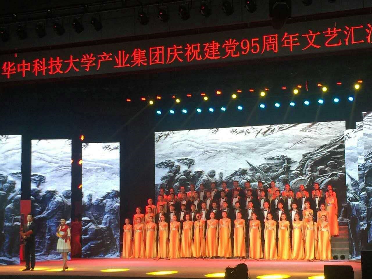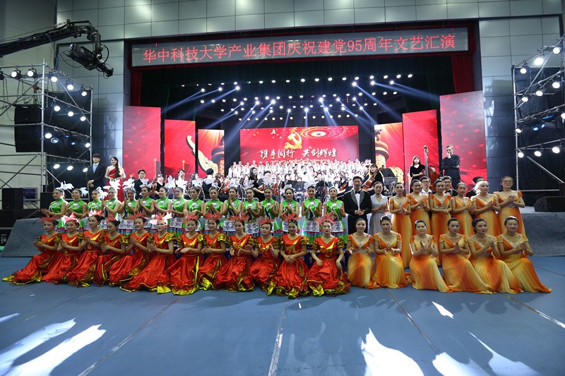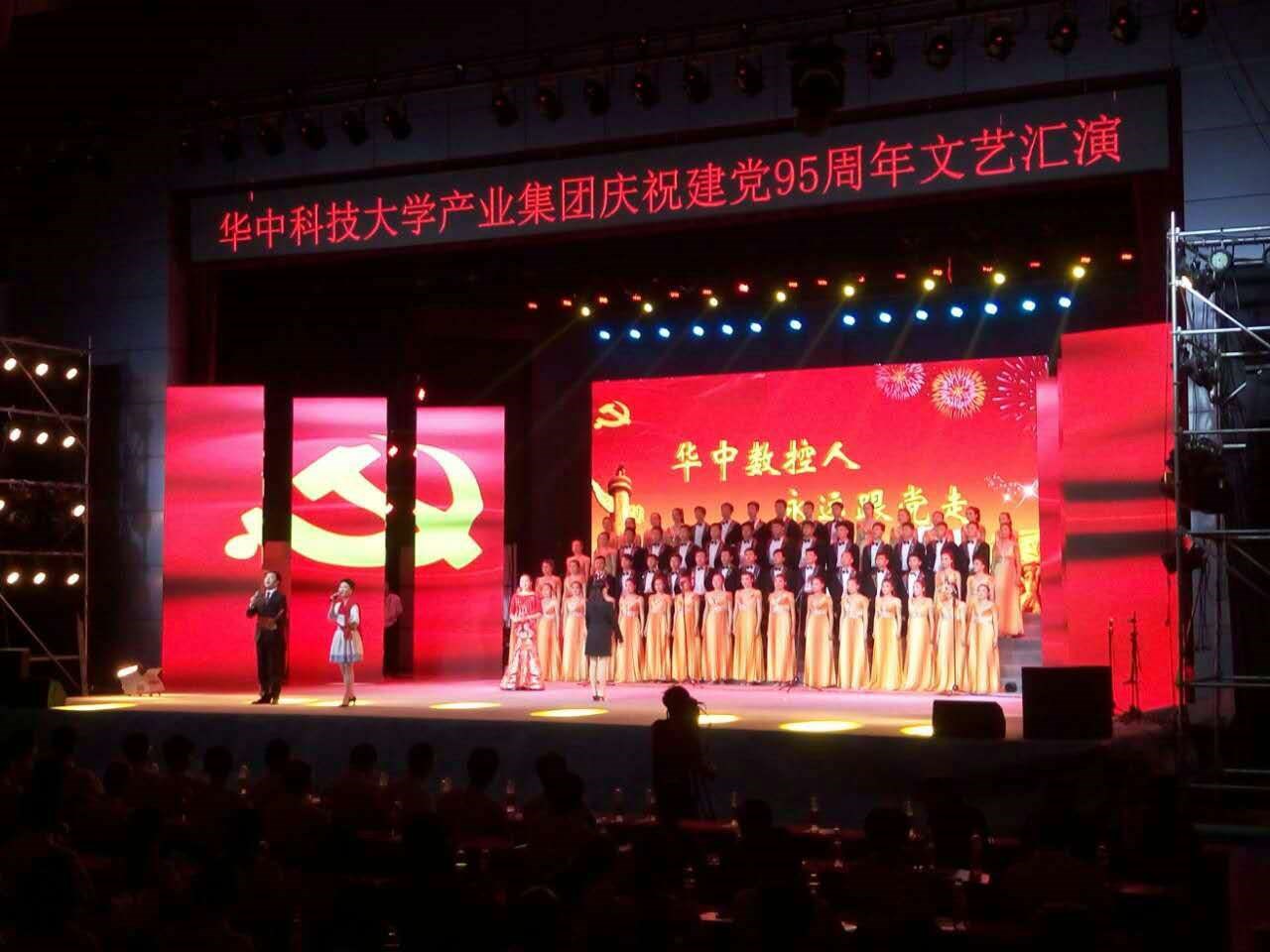 2016年6月18日,產業集團在華中科技大學韻苑體育館隆重舉行了紀念建黨95周年文藝匯演活動,晚會以“攜手同行 共創輝煌”為主題,現場座無虛席,通過回首黨的征程,向黨的生日和黨代會獻禮。華中數控演繹的節目是:詩與歌《中國大腦暢想曲》。節目以公司的發展歷史進程為藍本,以緊跟著黨走,實現科技興國中國夢為主旋律,展現了新中國科技工作者不斷打破國外技術封鎖,用中國大腦裝備中國制造的光輝事跡。整個演出非常成功,華麗的禮服、整齊的陣容、恢弘的氣勢,昂揚的精神風貌,深獲現場觀眾和領導的一致好評。