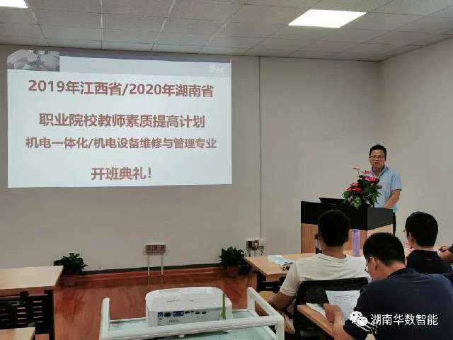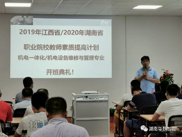 2020年8月3日由湖南省教育廳、江西省教育廳主辦、武漢華中數(shù)控股份有限公司承辦的湖南省2020年職業(yè)院校教師素質(zhì)提高計(jì)劃高職教師企業(yè)實(shí)踐——機(jī)電設(shè)備維修與管理專業(yè)培訓(xùn)班、江西省2019年職業(yè)院校教師素質(zhì)提高計(jì)劃高職教師“雙師型”教師專業(yè)技能培訓(xùn)——機(jī)電一體化專業(yè)培訓(xùn)班在湖南華數(shù)智能技術(shù)有限公司開班。來自湖南省16所高職院校的19名老師、江西省19所高校25名老師參加了此培訓(xùn)班。