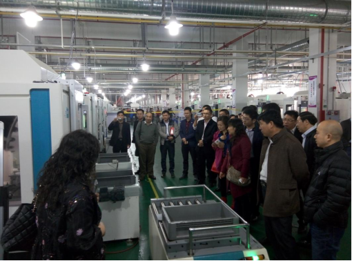 1月9日上午,各院校教師一行參觀深圳臺群精機、大連機床東莞雙創孵化基地和東莞勁勝,華中數控熊清平副總裁重點為大家詳細介紹了華中數控與東莞勁勝共建的3C智能制造示范工廠,此項目智能設備層由180臺高速鉆攻中心(配置華中8型高速鉆攻中心數控系統),72臺華數機器人,25臺RGV和15臺AGV小車構成,集成華中數控云服務平臺,組成完整的移動終端配件智能制造典范工廠,充分體現了“三國、五化、一核心”的智能制造戰略思想。