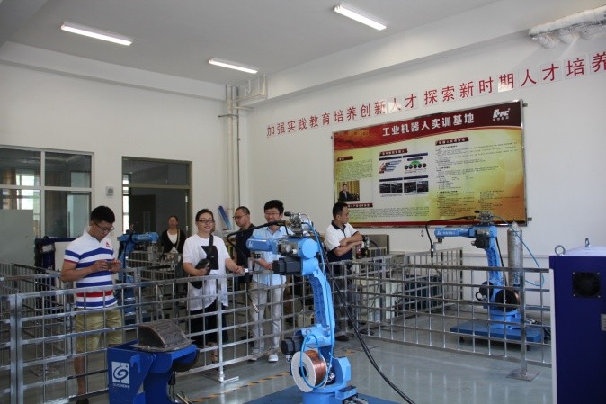 典禮儀式結(jié)束后,全體與會(huì)人員合影留念,并且一起參觀(guān)了學(xué)院實(shí)訓(xùn)車(chē)間,對(duì)學(xué)院良好的教學(xué)實(shí)訓(xùn)條件和敬業(yè)勤勞的教師隊(duì)伍留下深刻印象。全體培訓(xùn)教室就工業(yè)機(jī)器人、智能制造等相關(guān)專(zhuān)業(yè)的教育教學(xué)、實(shí)訓(xùn)實(shí)踐等內(nèi)容進(jìn)行了交流和研討。本次培訓(xùn)為期10天,將主要就工業(yè)機(jī)器人指令、電氣系統(tǒng)、控制原理、離線(xiàn)編程、操作、拆裝等內(nèi)容進(jìn)行培訓(xùn),培訓(xùn)指導(dǎo)工作由校企合作雙方的近10位老師共同完成,其中包括華中數(shù)控精心選派的孫海亮、石義淮、楊威、劉豐等具有豐富教學(xué)、實(shí)踐經(jīng)驗(yàn)的老師。