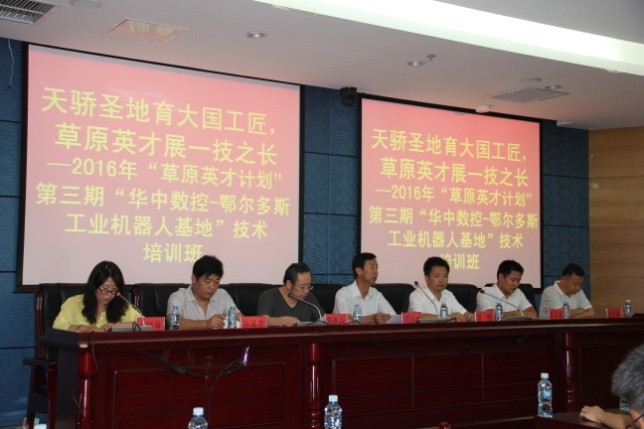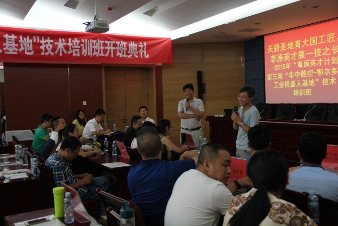 “天驕?zhǔn)サ赜髧?guó)工匠,草原英才展一技之長(zhǎng)。”7月25日-8月4日,華中數(shù)控與鄂爾多斯職業(yè)學(xué)院合辦的“2016草原英才計(jì)劃”——工業(yè)機(jī)器人培訓(xùn)班在內(nèi)蒙古鄂爾多斯職業(yè)院校成功舉辦。來(lái)自廣州工程技術(shù)職業(yè)學(xué)院、河北工業(yè)職業(yè)技術(shù)學(xué)院、武漢軟件工程職業(yè)學(xué)院、福建工業(yè)學(xué)校、衡水學(xué)院、遼寧建筑職業(yè)學(xué)院等近20所院校的四十余名教師參加了本次培訓(xùn),普遍反映收獲很大,感謝華中數(shù)控和鄂爾多斯職業(yè)學(xué)院共同提供了很好的學(xué)習(xí)平臺(tái),針對(duì)工業(yè)機(jī)器人的教學(xué)和實(shí)訓(xùn),大家共同研討、共同學(xué)習(xí)。培訓(xùn)期間,各位老師對(duì)鄂爾多斯這塊神奇的地方、天驕?zhǔn)サ亓粝律羁逃∠螅惺艿絻?nèi)蒙古獨(dú)特的文化魅力和自然風(fēng)景。