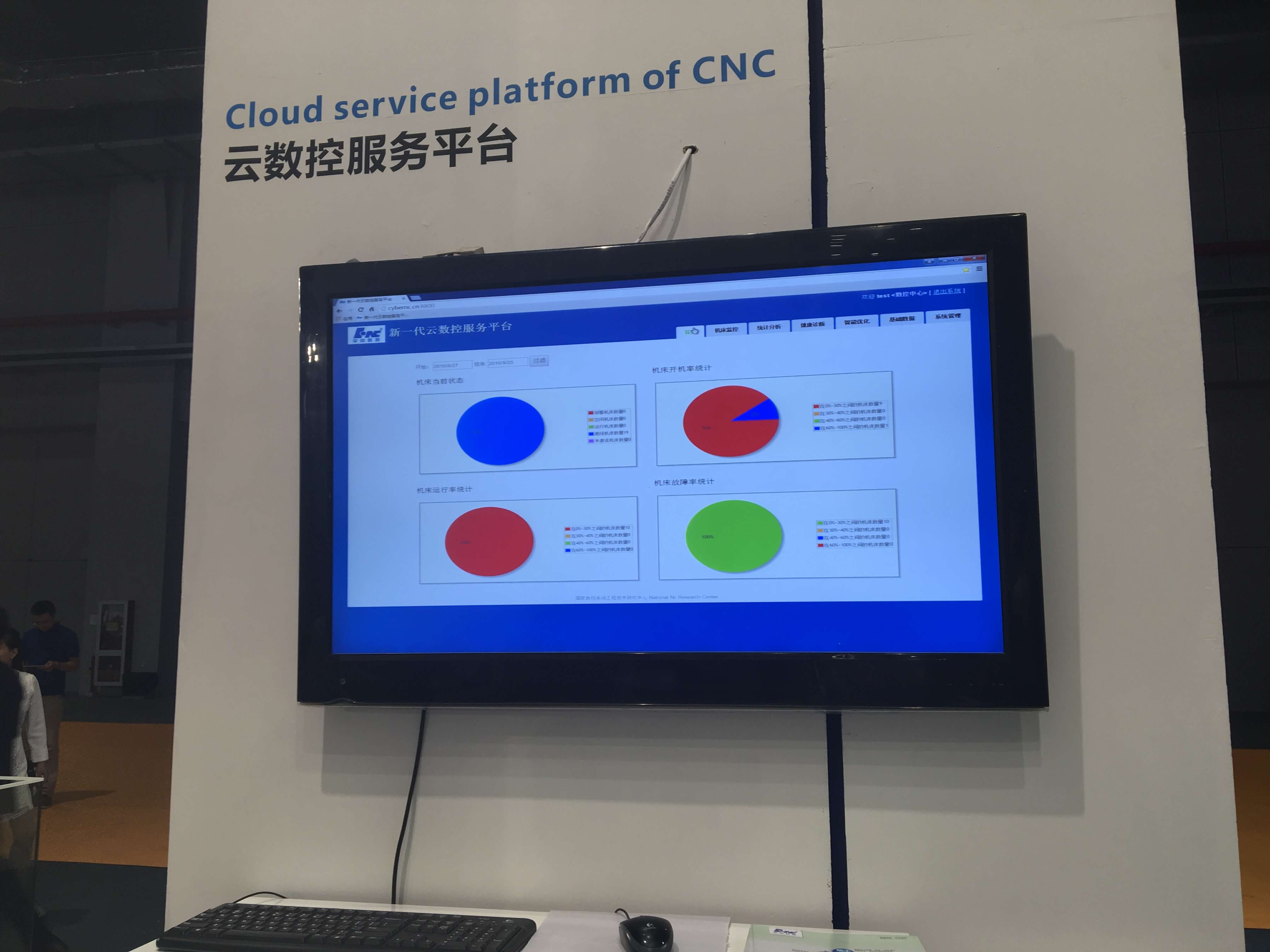 華中數控新一代云服務平臺,是利用3G、WIFI等技術,通過無線網絡,監控車間設備運行情況,通過對機床的不同狀態的統計分析,對大數據的析挖掘,發現系統所存在的問題,以此為依據指導生產管理,展出取得了良好效果。