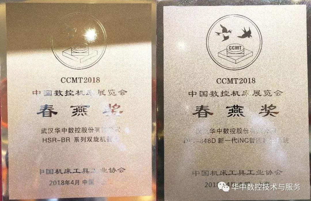 2018年4月9日下午,CCMT2018展會(huì)開(kāi)幕當(dāng)天,中國(guó)機(jī)床工具工業(yè)協(xié)會(huì)舉辦了“春燕獎(jiǎng)”頒獎(jiǎng)儀式。華中數(shù)控憑借iNC智能化數(shù)控系統(tǒng)和BR系列雙旋機(jī)器人兩項(xiàng)展品光榮入選CCMT2018春燕獎(jiǎng)。