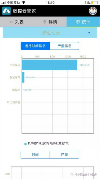 APPweb上顯示的勝利精密車間機床狀態和統計信息