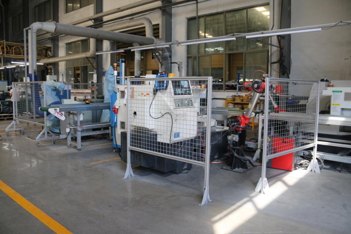 在三禾廚具的生產車間,除了一排又一排各式各樣的鍋具外,更吸引小編的是在鍋具產線上站著的那些身穿藍衣的“神秘俠客”,他們矗立在一臺臺機床之間,手臂靈活的來回抓取一件一件工件,面不改色,一絲不茍!就像武俠電影中立于陣前的俠客!