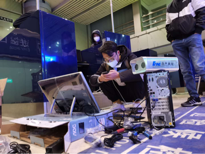 2月27日,華中數(shù)控接到海關(guān)總署要求在北京西客站加裝“紅外熱成像智能人體測溫系統(tǒng)”的通知,火速派出工程師崔曉龍、邱志新和吳碩等趕赴現(xiàn)場。團隊成員熱情高漲,戴上口罩,脫掉厚重的棉衣輕裝上陣,聚精會神的盯著控制屏幕,爭分奪秒安裝調(diào)試“紅外熱成像智能體溫檢測系統(tǒng)”,滿足國際列車旅客出入境疫情防控需求。