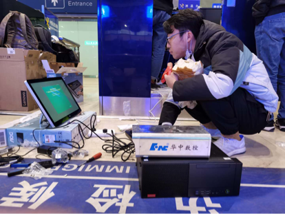 ? 華中數(shù)控工程師在北京西客站國際列車出入境聯(lián)檢大廳現(xiàn)場安裝設(shè)備?