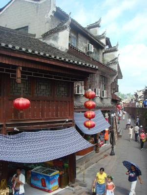 傍晚時分,導游領著我們初識美麗的古鎮。夜晚的古鎮顯得分外的熱鬧和迷人。在古鎮的街上走走,熱鬧一下,在沱江里放放蓮花燈,浪漫一下,在沱江邊的酒吧坐坐,小資一下,感覺還真不錯。