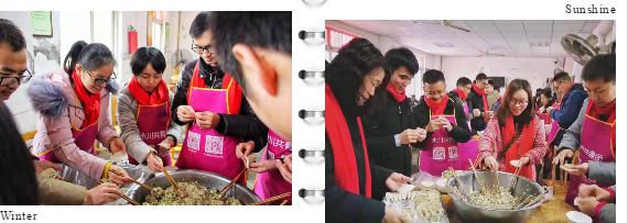 贈(zèng)衣活動(dòng)結(jié)束后,大家一起包餃子做午飯。在包餃子的過(guò)程中,大家互相學(xué)習(xí);餃子下鍋煮熟后,老人們和志愿者們都品嘗到了熱騰騰的,充滿幸福味道的餃子。