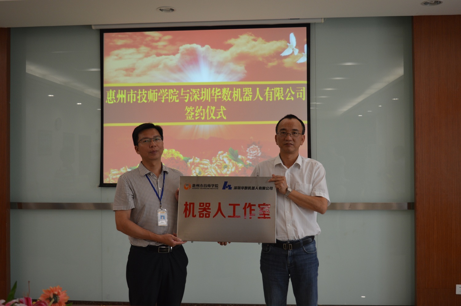 2016年6月7日,惠州市技師學院與深圳華數機器人簽約儀式隆重舉行。惠州市技師學院譚院長、分管校企合作黃院長、校企合作處朱處長、制造工程系邱主任、金主任出席簽約儀式,武漢華中數控股份有限公司副總裁、深圳華數機器人有限...